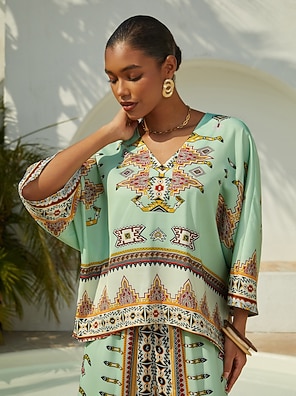 Ethnic Totem Silky Satin Wide-Leg Pants