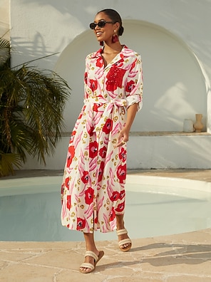 Abstract Floral Long Shirt Dress Casual