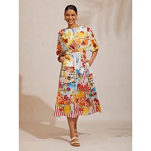 Frauen Casual Kleid mit Blumenmuster und 3 4 Arm