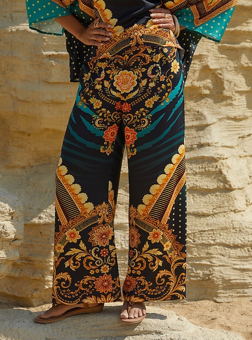 Emerald Empress Seidensatin-Hose mit elastischem Bund und weitem Bein