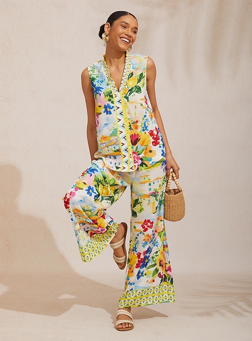Holiday Citrus Garden Airy Linen Look Sleeveless Top