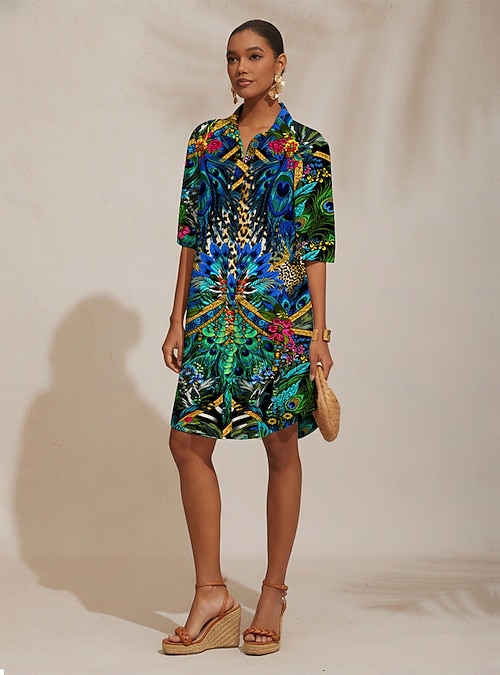 Jungle Wild Party Silky Satin Straight Shirt Dress