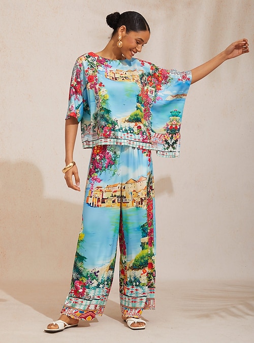 Mallorca Blossom Silky Satin Dolman Sleeve Top