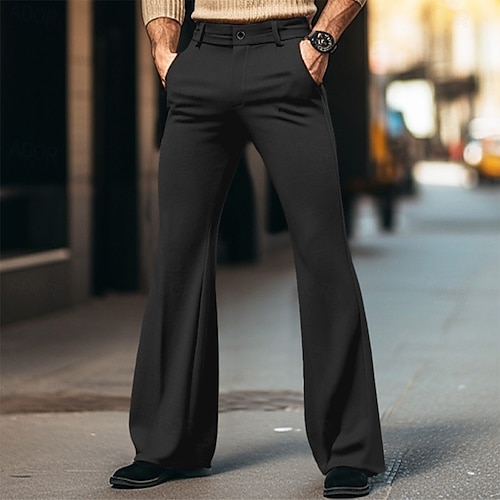 Men's Dress Pants Flared Pants Bell Bottom Trousers Suit Pants Pocket Plain Comfort Breathable Outdoor Daily Going out Fashion Casual Black White