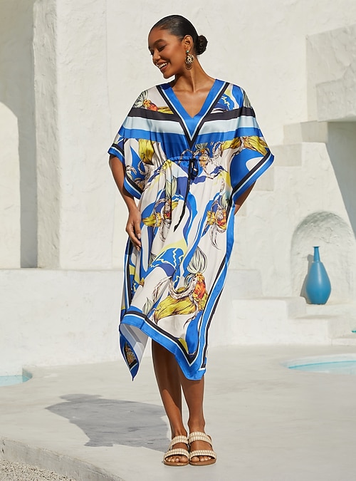 Ocean Blue Orchid Silky Satin Kaftan