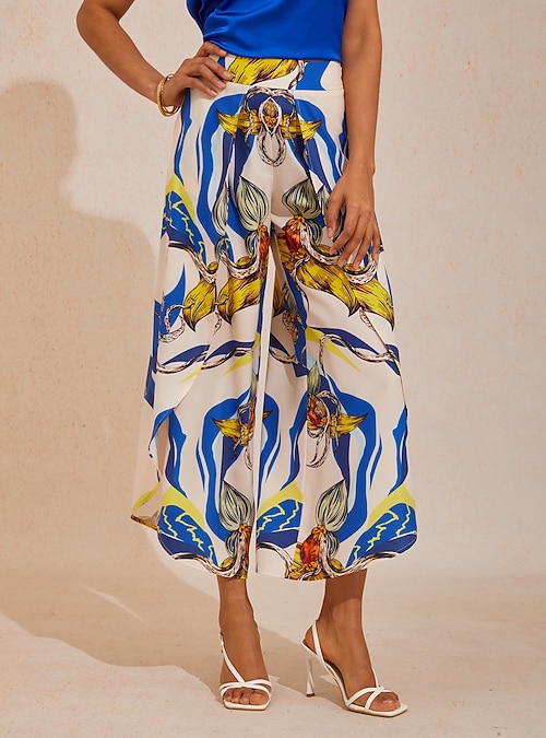 Ocean Blue Orchid Silky Satin Wide leg Pants