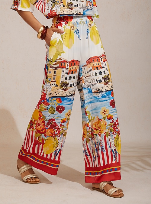 Santorini Summer Silky Elastic Waist Wide Leg Pants