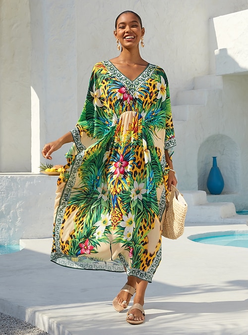 Tropical Temptation Flowy Chiffon Lepord Kaftan