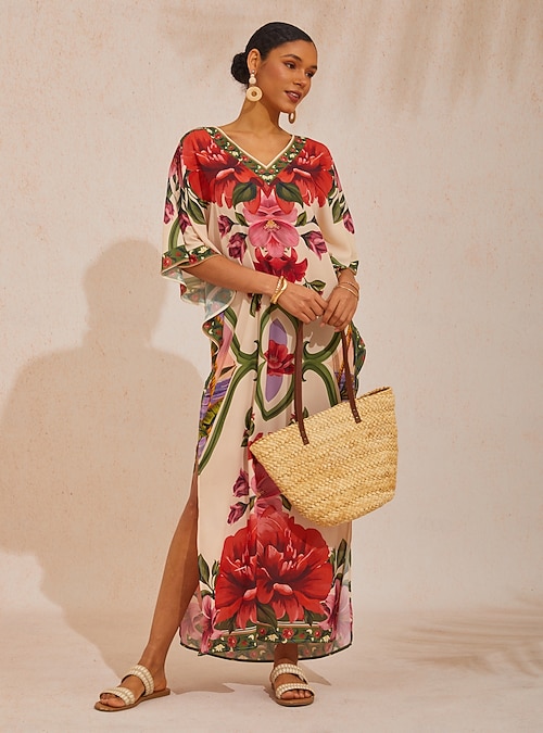 Hawaii Palm Flowy Chiffon Floral Maxi Dress