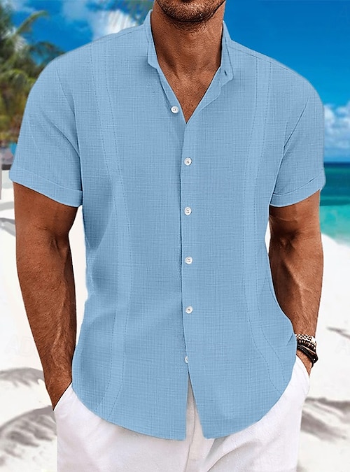 Hombre Camisa camisa de lino Camisa Guayabera Camisa con cuello mao Camisa de verano Ropa de playa Plano Vacaciones Maldición Negro Blanco Azul Piscina Verde Manga Corta Cuello Verano Ropa