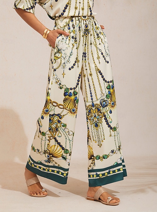 joyas vintage, satén sedoso, pantalones de pierna ancha con cintura elástica, #12415266