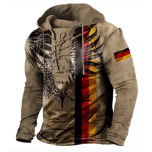 Hombre Étnico Sudadera Sudaderas Design Casual Boho Grande y alto Manga Larga Con Capucha Diario Deporte Deportes Festivos Azul Piscina Amarillo Rojo Marrón Verde Trébol Acordonado Estampado