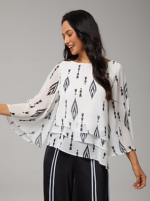 Satin Geometric Print Casual Top
