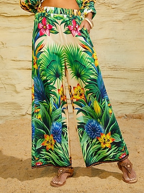 pantalon bohème à motifs cachemire en soie à jambes larges