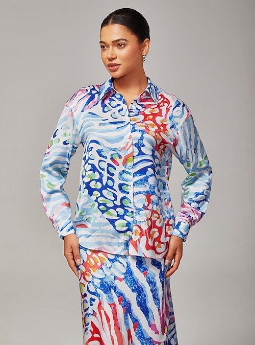 Leopard Print Satin Drop Shoulder Elegant Shirt