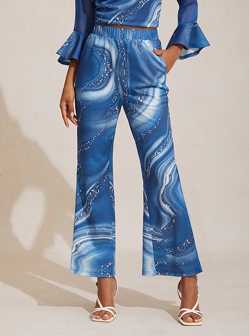 Stretch Floral Chiffon Flared Pants