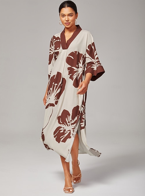 Floral V Neck Rayon Vacation Dress