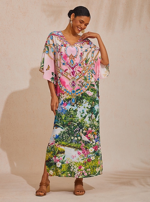 Jungle Print Chiffon Dolman Maxi Dress