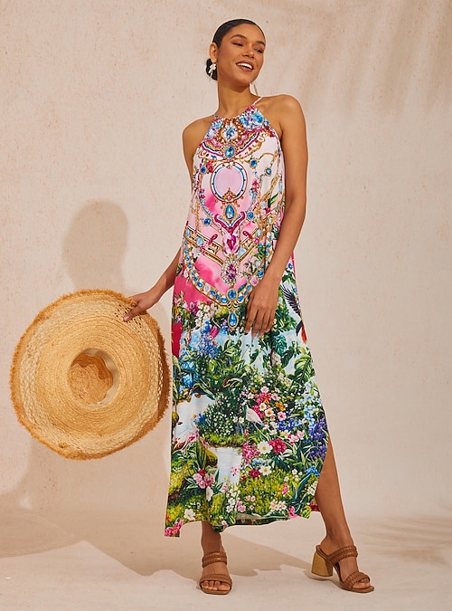 Jungle Print Loose Satin Maxi Dress