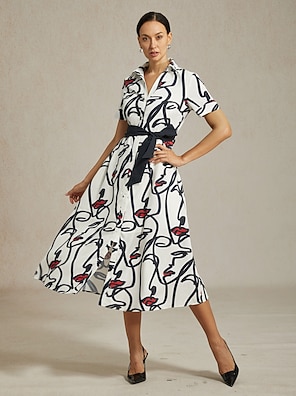 Abstract Face Art Design Short Sleeve Shirt Dress