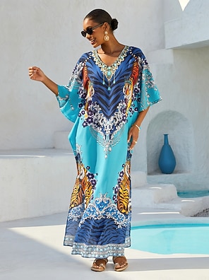 caftano con maniche dolman in chiffon fluido da donna lionheart