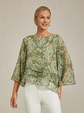 Paisley Print Crew Neck Bell Sleeve Layered Blouse
