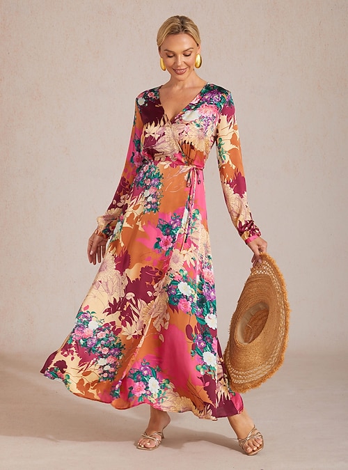maxi abito scampanato con lacci floreali