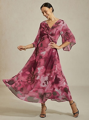 Floral Raglan Sleeve Adjustable Waist Rayon Dress
