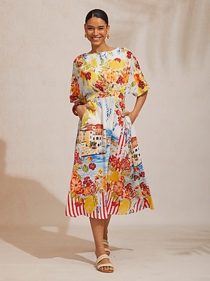 santorini sommer silkemyk naturskjønn blomsterskjortekjole