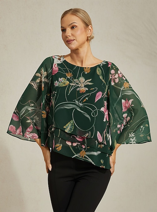 Floral Print Sheer Chiffon Layered Blouse