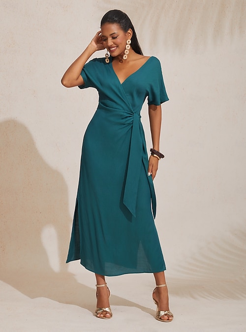Kort Wrap Kjole i Fast Farge med Chandelier Design