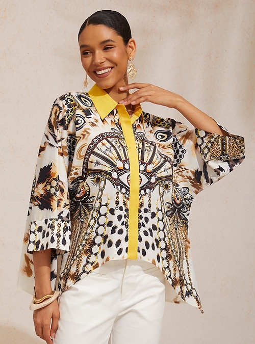 vintage leopardsmykker silkemyk satengskjorte med dolmanermer