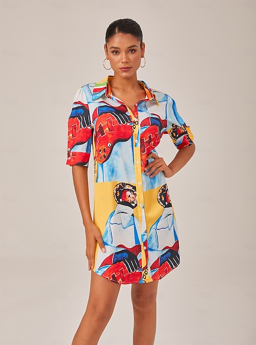 Artistic Satin Mini Shirt Dress