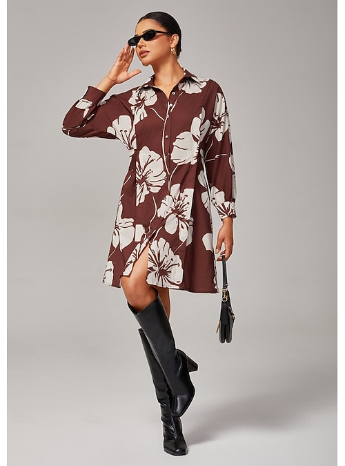 Floral Raglan Sleeve Adjustable Waist Rayon Dress