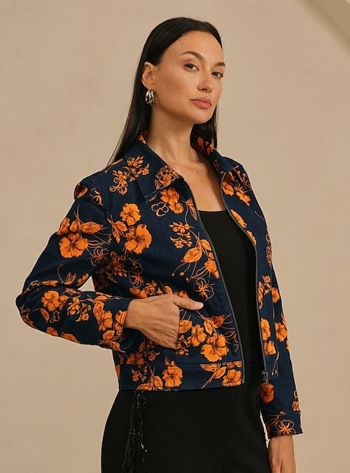 Block Print Denim Jacket #19931907