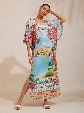 Caftan de chiffon fluido com mangas morcego estilo vila dos sonhos