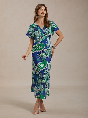 Abstract Batwing Cinched Maxi Dress