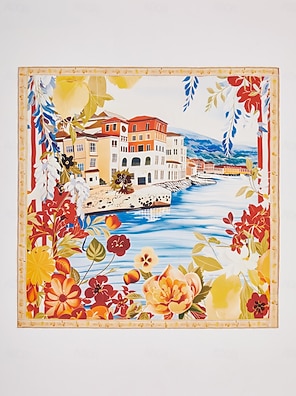 Lenço quadrado de chiffon fluido de verão Santorini