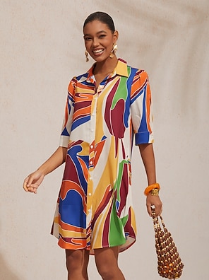Casual Asymmetrical Split Pumpkin Shirt Dress