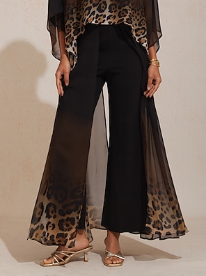 Gradient Leopard Print Chiffon Knit Wide Leg Pants