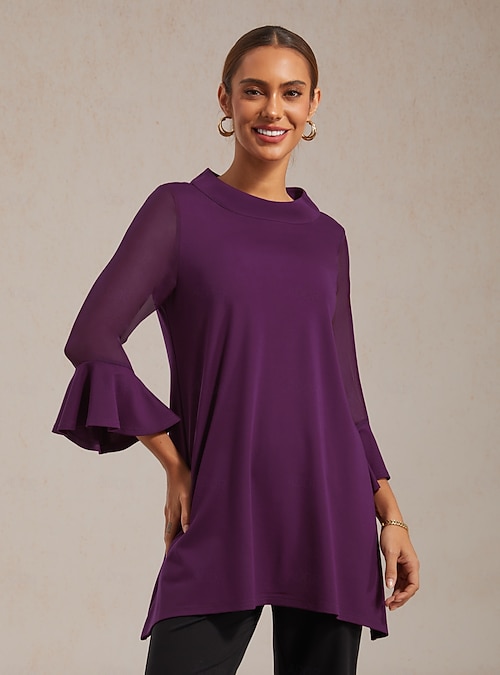 Solid Chiffon Tencel Patchwork Ruffle Blouse
