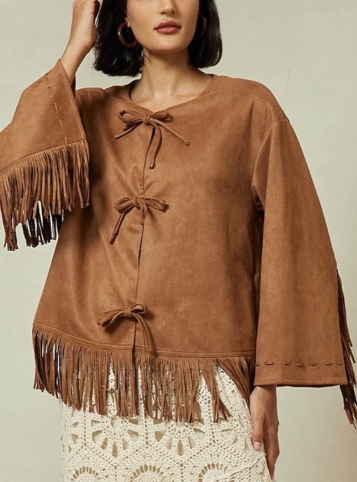 Brand Suede Design Fringed Material Flare Sleeve Jacket