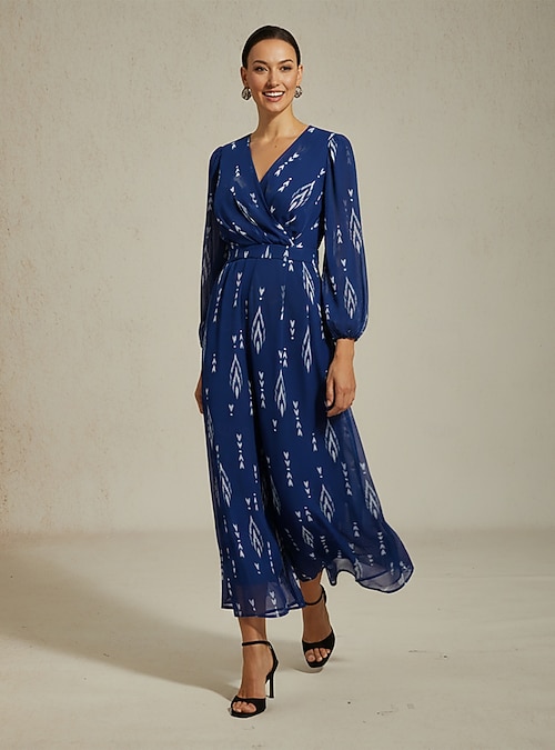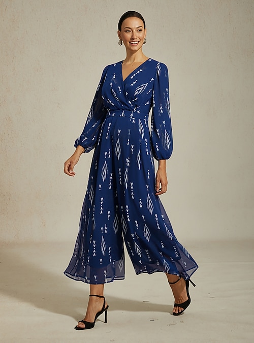 Printed Chiffon V Neck Wide Leg Jumpsuit