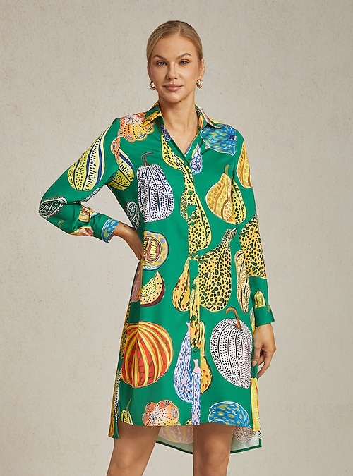 Pumpkin Print Asymmetrical Hem Shirt Dress